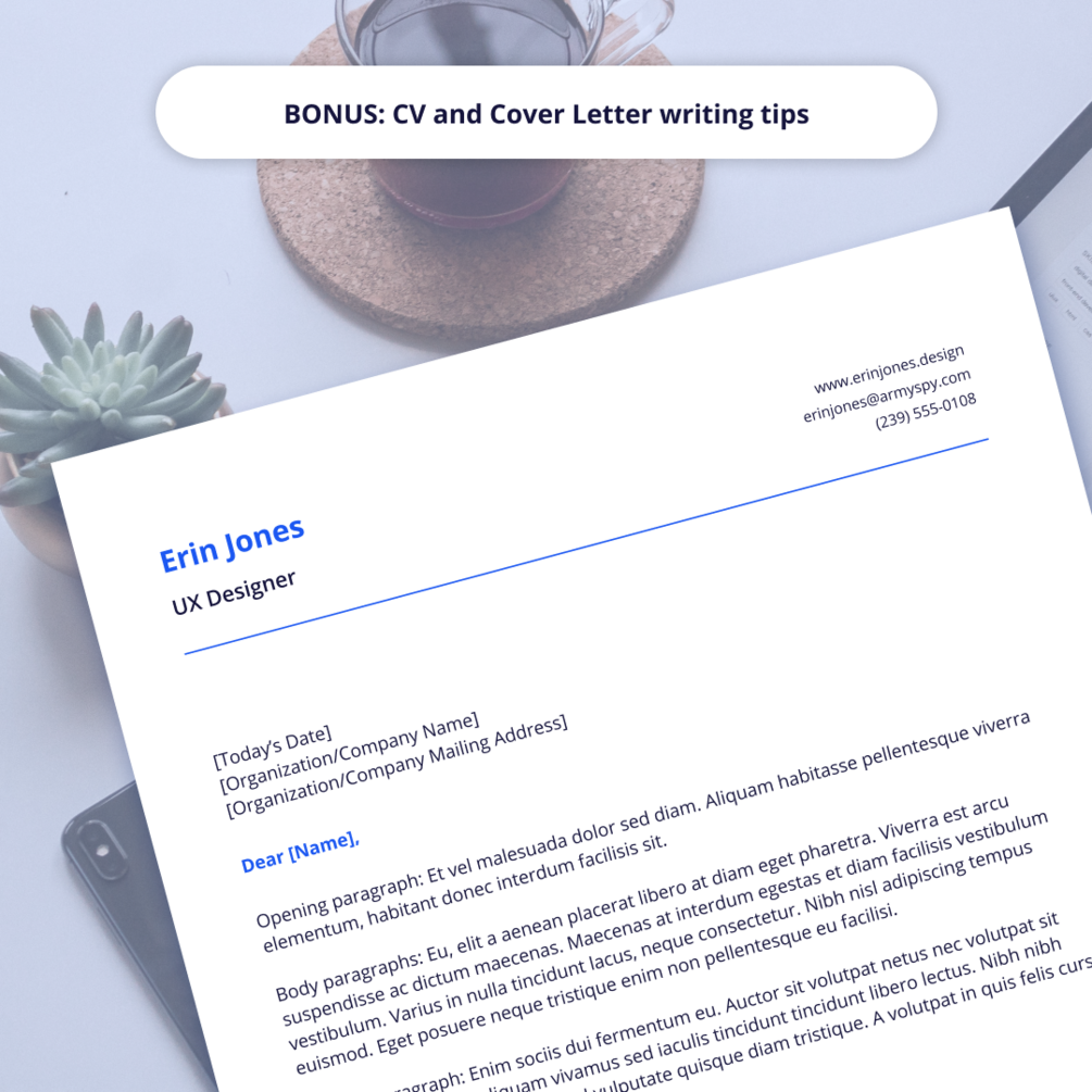 BONUS: this file contains writing tips for both your CV and Cover letter, so you can be the best applicant out there!